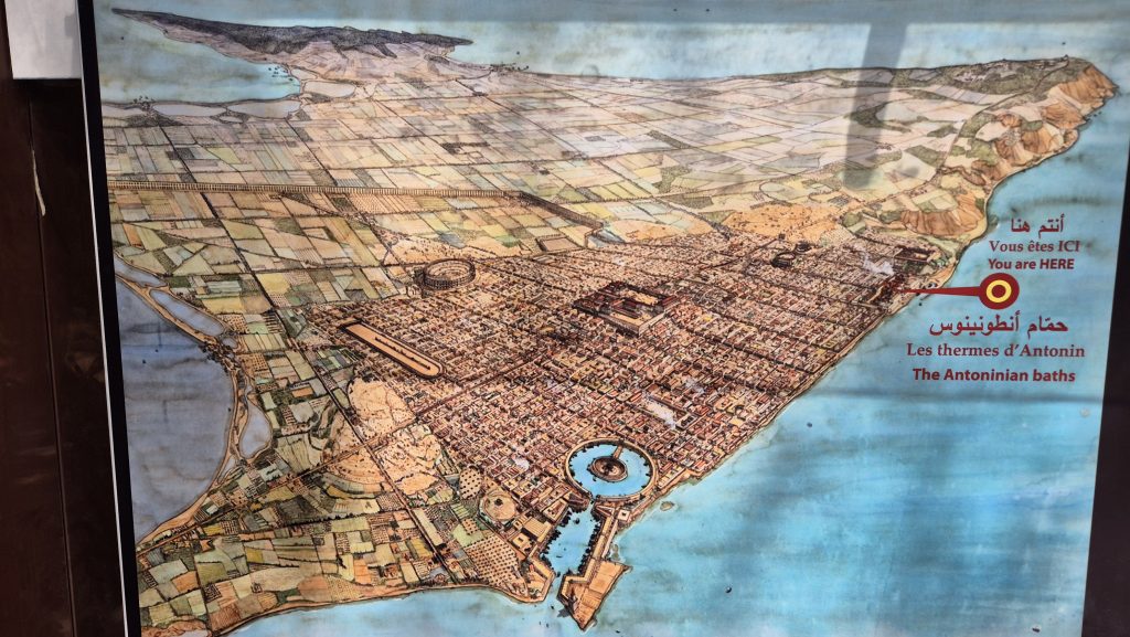 –The Ruins of Carthage (now a suburb of Tunis on the sea) including Bursa Hill, where the palace was located in the ancient city, and the Baths of Antoninus built by the Romans who took over Carthage in 146 BCE at the end of the third Punic War.